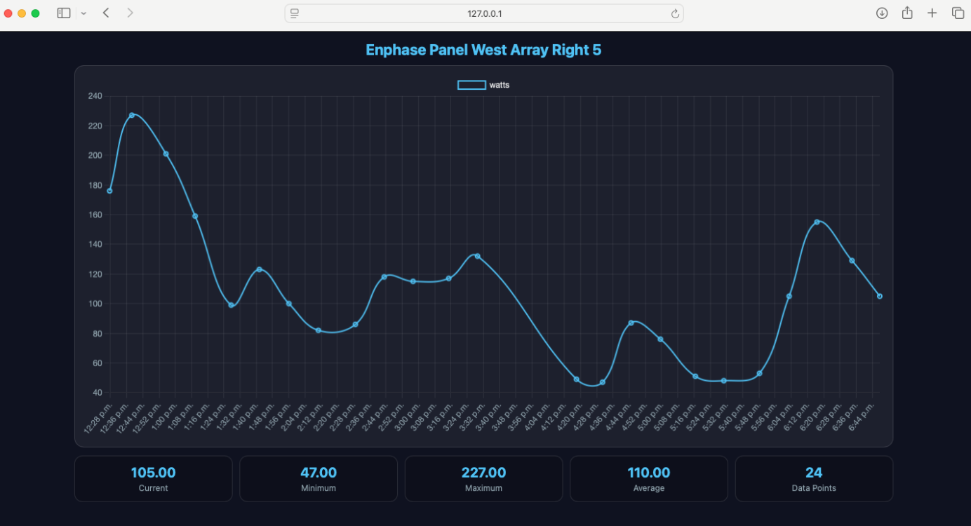 uiDefaults (simple / UI-aligned)hours — default time window (e.g. 24, 48)type — chart type: line, bar, scattertension — line smoothing (0 = angular, 0.4 = smooth)bg — page background color (hex, e.g. #0f1220)line — default accent/line color (hex)fill — fill under the line (true/false)fillColor — fill color (hex)stats — show/hide stat cards (true/false)font — CSS font-family stringchartJsOverrides (advanced Chart.js options)These merge into the Chart.js options object.